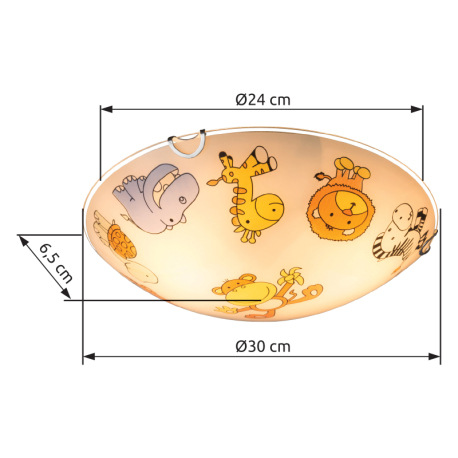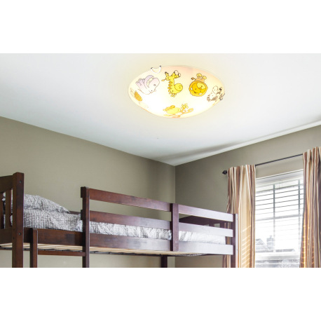 Stropné svietidlo, biela, viacfarebné sklo s detským vzorom, Ø 300, V: 65, bez žiaroviek 2xE27, max.