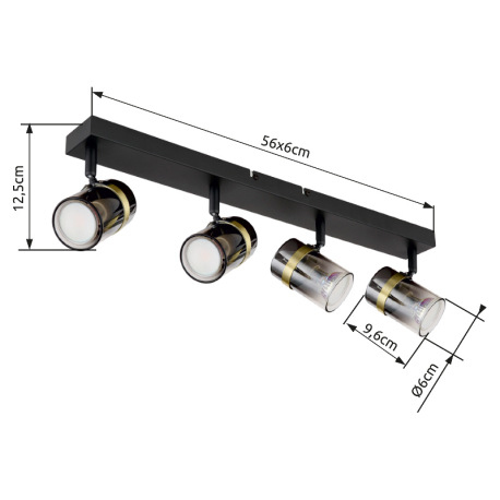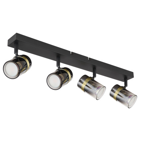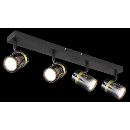 Stropné svietidlo, bodové, kov čierny matný, dymové sklo s prechodom do priehľadného skla, mosadz, D
