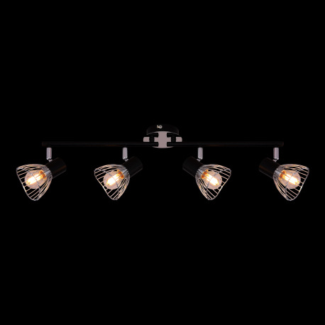 Stropné svietidlo, chróm, kov čierny, pohyblivé, DxŠxV:600x90x150, bez žiaroviek 4xE14, max. 40W 230