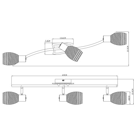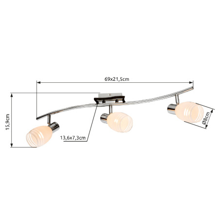 Stropné svietidlo, chróm, MDF wenge, satinované sklo, DxŠxV: 690x215x160, bez žiaroviek 3xE14, max.
