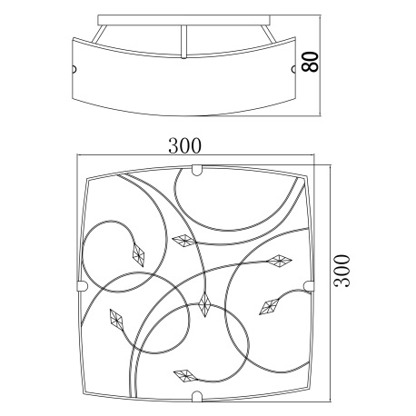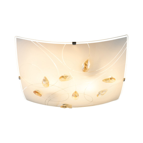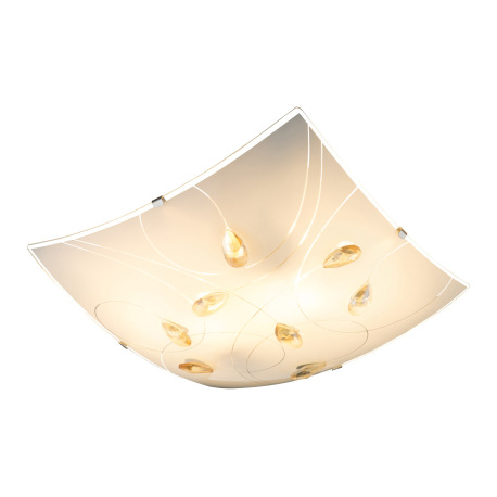 Stropné svietidlo, chróm, satinované sklo, jantárové kryštály, DxŠxV: 300x300x80, bez žiaroviek 2xE2
