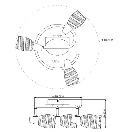 Stropné svietidlo, chróm, satinované sklo, Ø 280, V:190, bez žiaroviek 3xE14, max. 40W 230V.