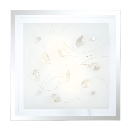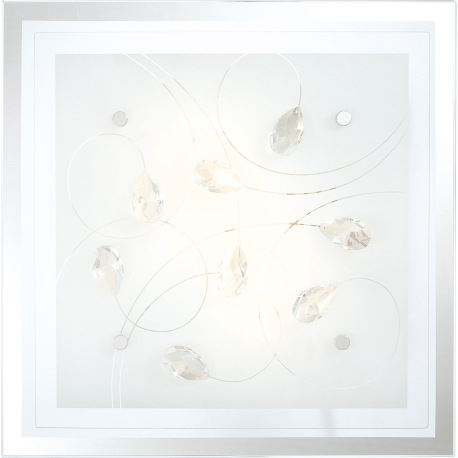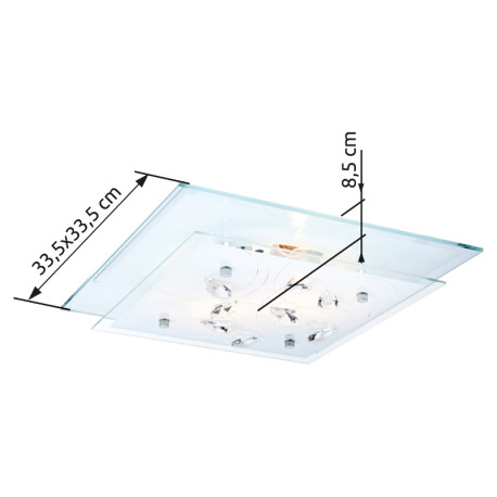 Stropné svietidlo, chróm, sklo biele, K5 kryštály priehľadné, DxŠxV: 335x335x85, bez žiaroviek 2xE27