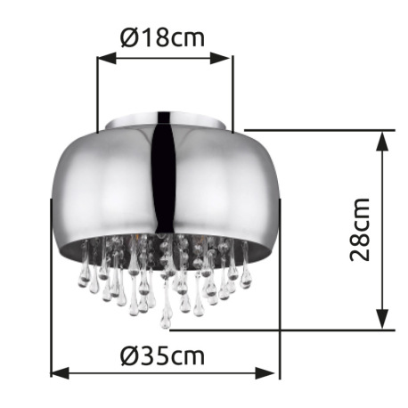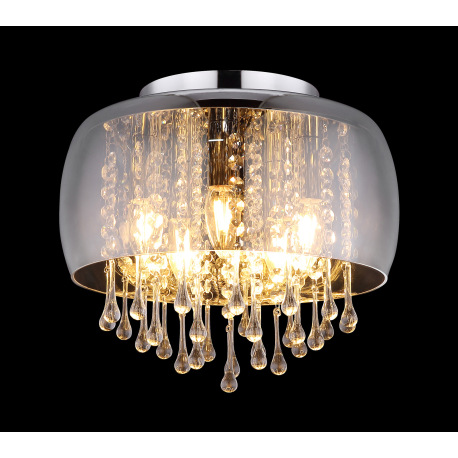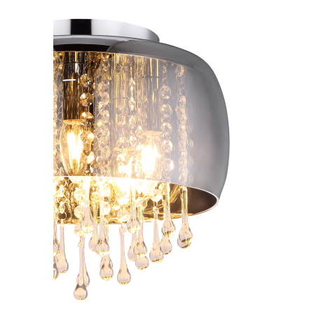 Stropné svietidlo, chróm, sklo dymové, sklenené krištále priehľadné, Ø350, V:280, bez žiaroviek 5xE1