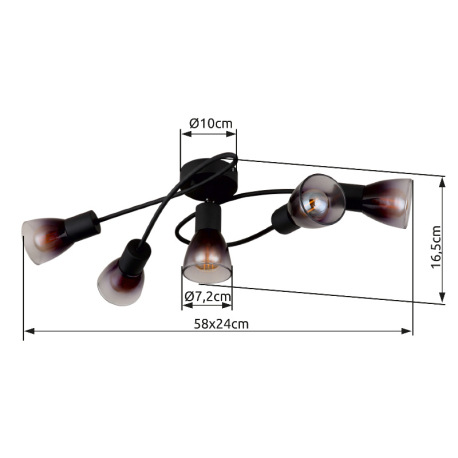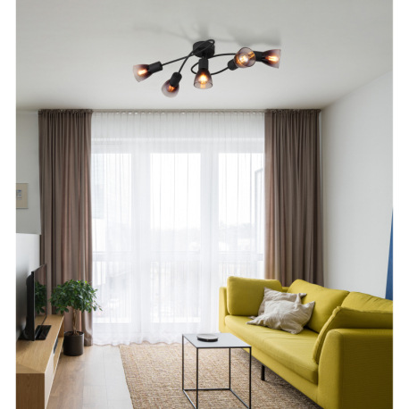 Stropné svietidlo, čierny matný kov, sklo dymové a priehľadné, DxŠxV: 580x240x165mm, bez žiaroviek 5
