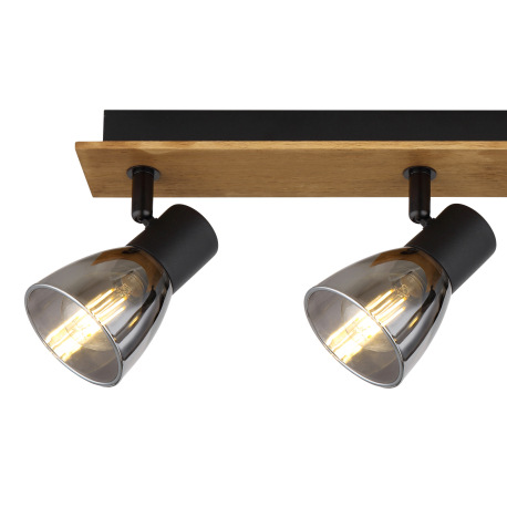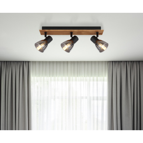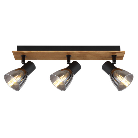 Stropné svietidlo, drevo hnedé, kov čierny, dymové sklo, DxŠxV:400x70x155mm, bez žiaroviek 3x E14, m