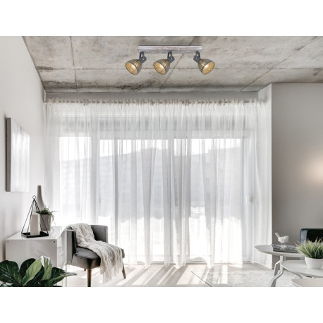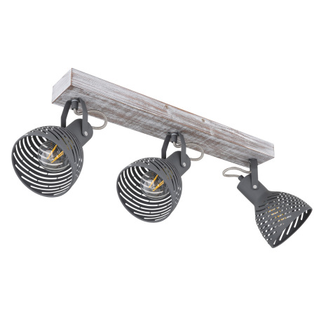 Stropné svietidlo, drevo nabielené, kov sivý modrý, tienidlo s ozdobnými štrbinami, DxŠxV:540x125x25