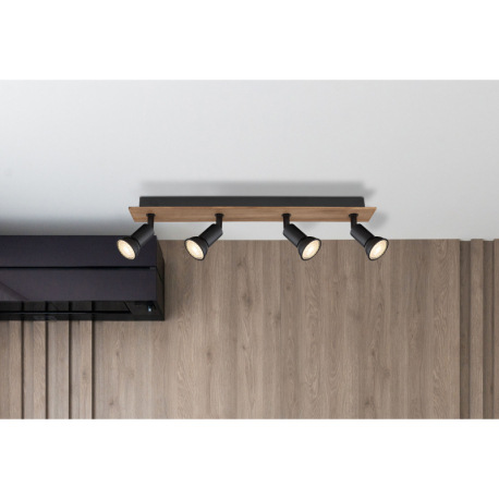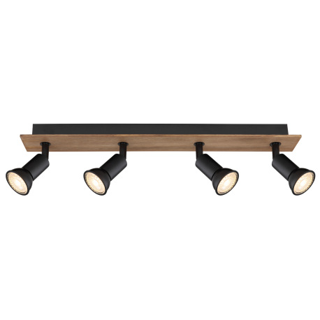 Stropné svietidlo, drevo tmavohnedé, kov čierny, DxŠxV:500x60x90mm, bez žiaroviek 4x GU10, max. 35W