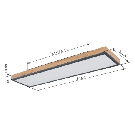Stropné svietidlo, hliník grafit, MDF imitácia dreva, akryl biely, stmievateľné, niekoľko úrovní pom