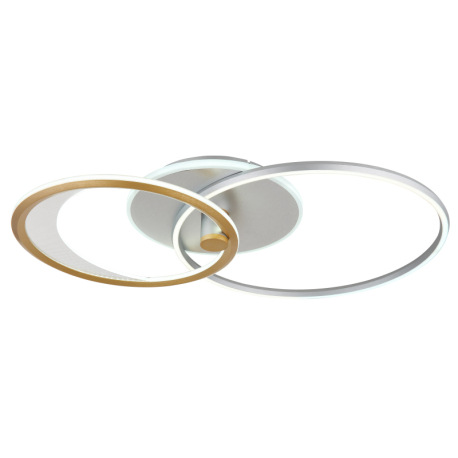 Stropné svietidlo, hliník strieborný a zlatý, akryl číry, plast biely, stmievateľné, niekoľko úrovní