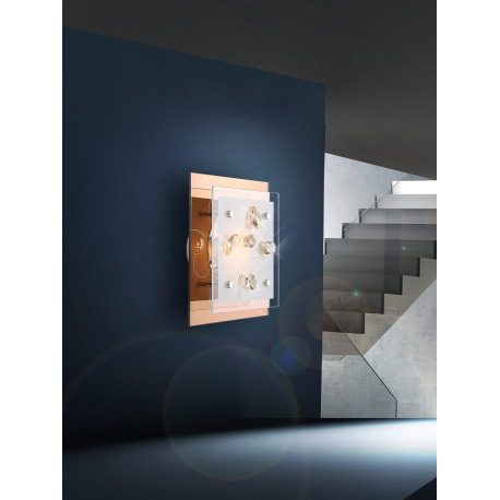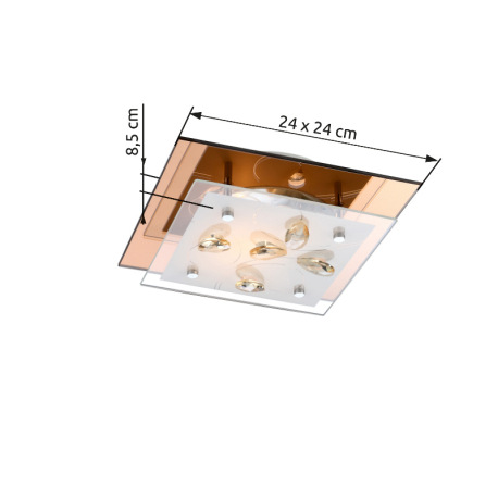Stropné svietidlo, jantár, biele sklo, K5 kryštály champagne, spodné sklo jantár, DxŠxV: 240x240x85,