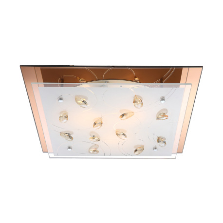 Stropné svietidlo, jantár, biele sklo, K5 kryštály champagne, spodné sklo jantár, DxŠxV: 420x420x85,