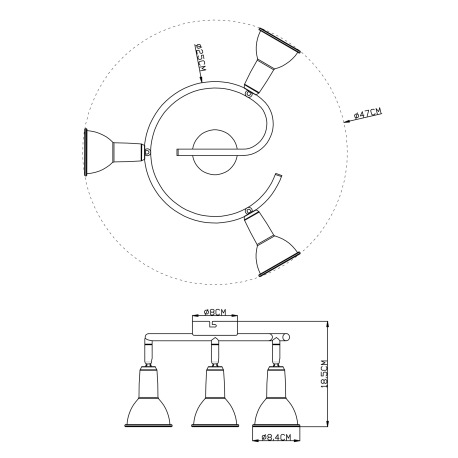 Stropné svietidlo, kov, biela so zlatou patinou, biela, Ø 250, V: 185, bez žiaroviek 3xE14, max. 40W