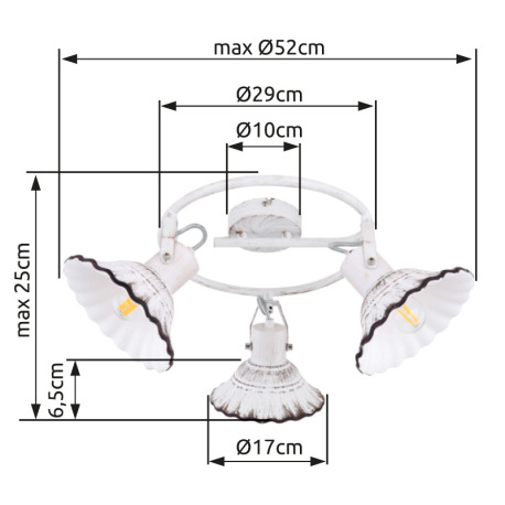 Stropné svietidlo, kov biely a čierny, keramika biela a čierna, Ø520, V: 250, bez žiaroviek 3xE27, m