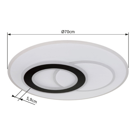 Stropné svietidlo, kov biely a čierny matný, akryl biely, stmievateľné, niekoľko úrovní pomocou nást