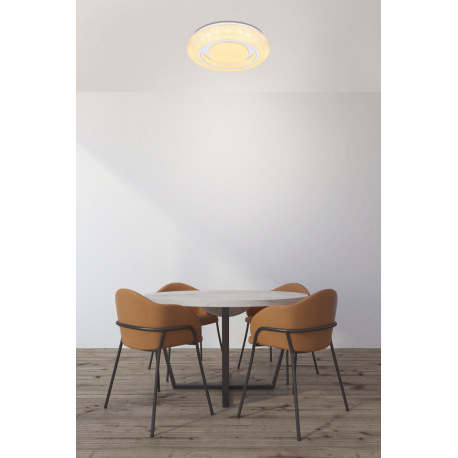 Stropné svietidlo, kov biely, akryl biely, chróm, 3 úrovne osvetlenia pomocou nástenného vypínača, t