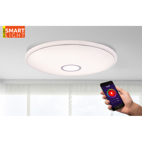 Stropné svietidlo, kov biely, akryl biely, chróm, kompatibilné s Google Assistant a Alexa, časovač,