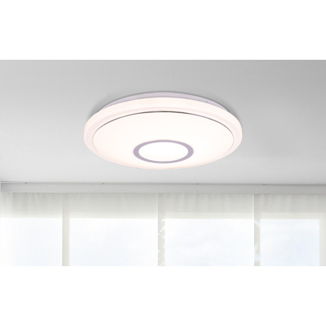 Stropné svietidlo, kov biely, akryl biely, chróm, trblietavý efekt, kompatibilné s Google Assistant