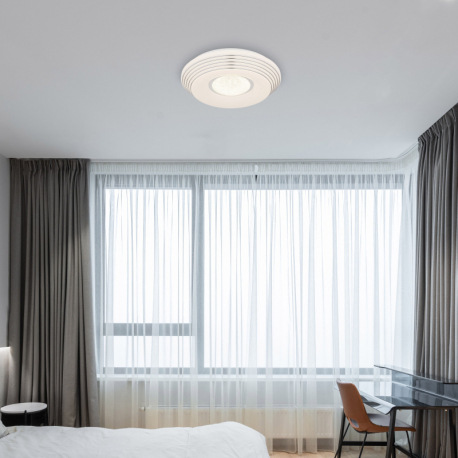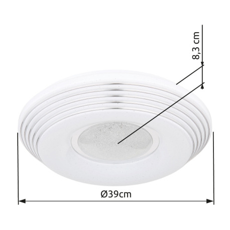 Stropné svietidlo, kov biely, akryl biely, trblietavý efekt, plastové krištále, chróm, stmievateľné,