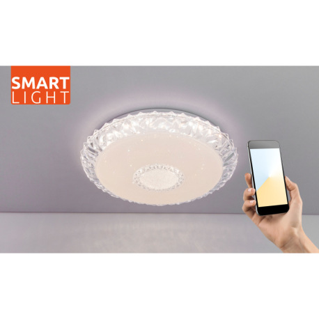 Stropné svietidlo, kov biely, akryl biely, trblietavý efekt, priehľadné akrylové krištále, stmievate