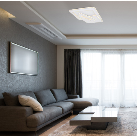 Stropné svietidlo, kov biely, akryl, kompatibilné s Google Assistant a Alexa, pamäťová funkcia, nočn