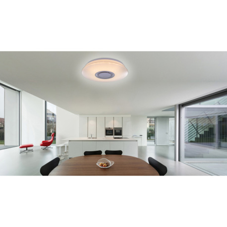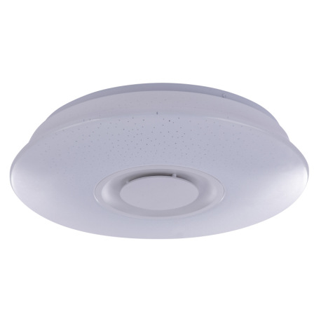 Stropné svietidlo, kov biely, akryl opál, plast biely, trblietavý efekt, reproduktor 5W, bluetooth,