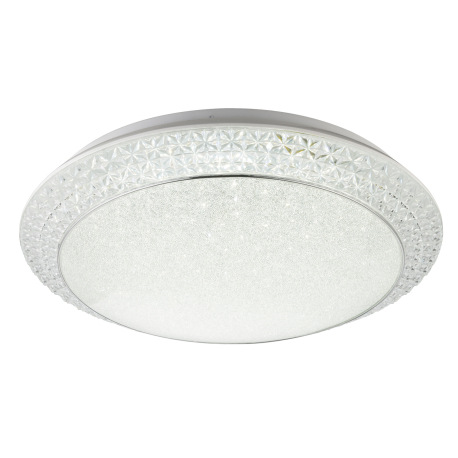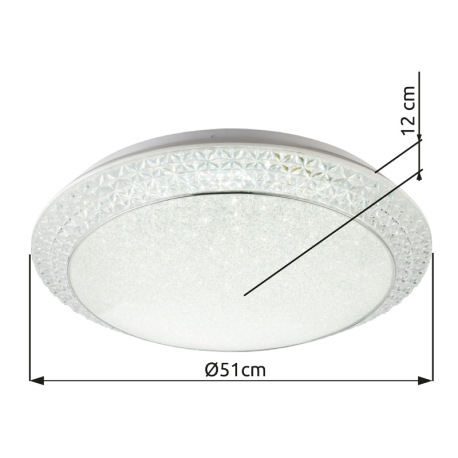 Stropné svietidlo, kov biely, akryl satinovaný, plastový kryštál priehľadný, zmena farby svetla (300