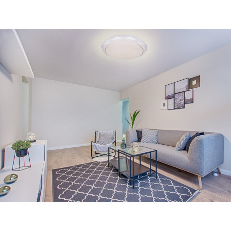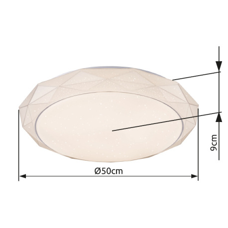 Stropné svietidlo, kov biely, akryl satinovaný, trblietavý efekt, nočné svetlo, stmievateľné, diaľk.