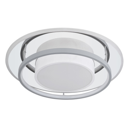 Stropné svietidlo, kov biely, chróm, akryl biely, plast sivý, pamäťová funkcia, nočné svetlo, stmiev