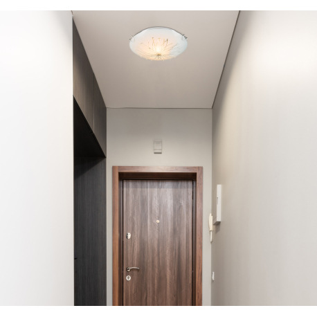 Stropné svietidlo, kov biely, chróm, satinované sklo, dekoračné kamienky, priehľadné ozdobné linky,