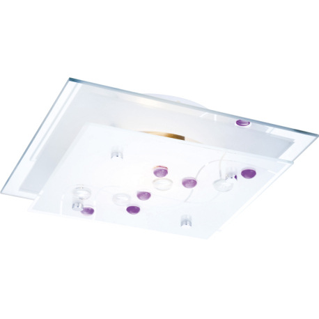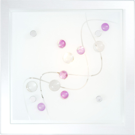 Stropné svietidlo, kov biely, chróm, satinované sklo, dekoratívne kamienky viacfarebné, DxŠxV: 240x2