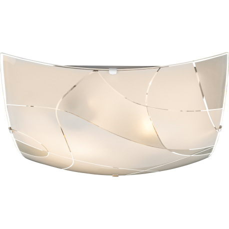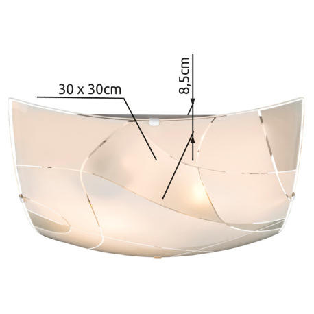 Stropné svietidlo, kov biely, chróm, satinované sklo, ozdobné linky, DxŠxV: 300x300x65, bez žiarovie