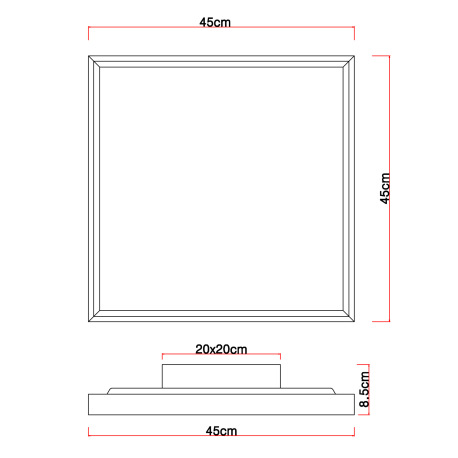 Stropné svietidlo, kov biely, MDF vzhľad dreva, plast opál, fixácia farby, DxŠxV:450x450x85mm, vráta