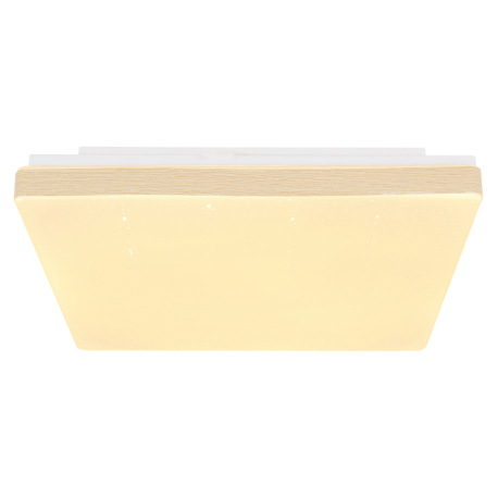 Stropné svietidlo, kov biely, plast imitácia dreva, plast opál, trblietavý efekt, DxŠxV:330x330x60,