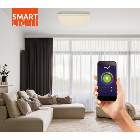 Stropné svietidlo, kov biely, plast v imitácii dreva, akryl, kompatibilné s Google Assistant a Alexa