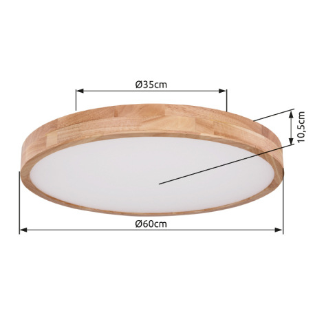 Stropné svietidlo, kov biely, prírodné drevo, plast biely, funkcia pamäte, stmievateľné, diaľkové ov