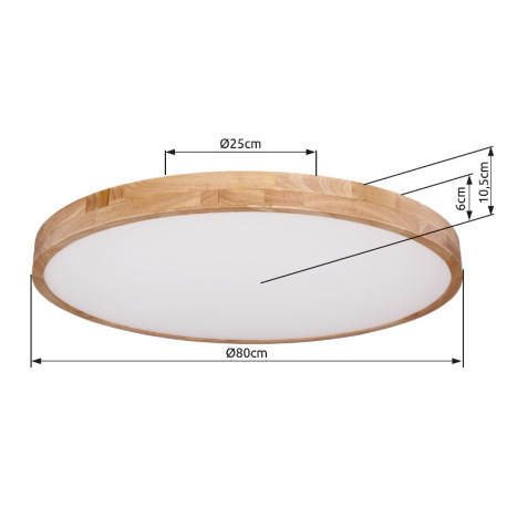 Stropné svietidlo, kov biely, prírodné drevo, plast biely, funkcia pamäte, stmievateľné, diaľkové ov
