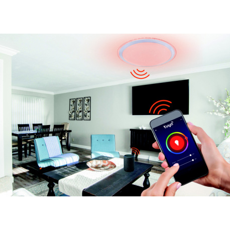 Stropné svietidlo, kov biely strieborný, akryl biely, číry, kompatibilné s Google Assistant a Alexa,