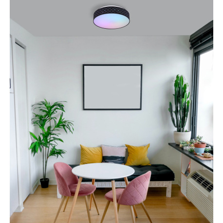 Stropné svietidlo, kov biely,textil čierny,akryl opál,pamäťová funkcia,nočné svetlo,stmievateľné,dia