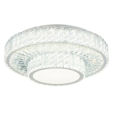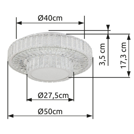Stropné svietidlo, kov chróm, krištále K5 číre, chrómový krúžok, stmievateľné, viac úrovní pomocou n