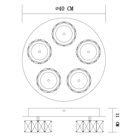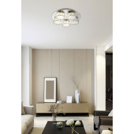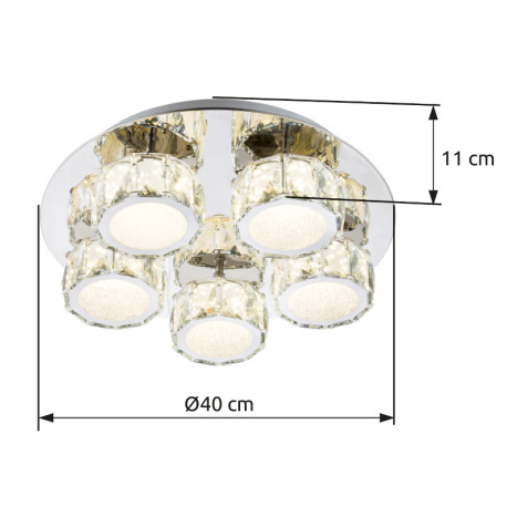 Stropné svietidlo, kov chróm, kryštál K5 priehľadný, akryl satinovaný, stmievateľné, Ø400, V:110, vr