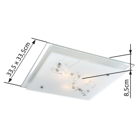 Stropné svietidlo, kov chróm, satinované sklo, dekoratívne kamienky, zrkadlový okraj DxŠxV: 335x335x