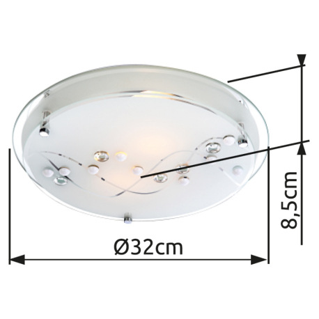 Stropné svietidlo, kov chróm, satinované sklo, dekoratívne kamienky, zrkadlový okraj, Ø 320, V: 85,