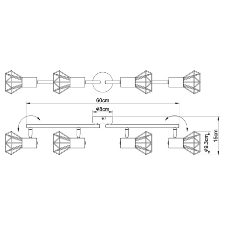Stropné svietidlo, kov chróm, sklo číre, nastaviteľné, DxV: 600x150, bez žiaroviek 4xE14, max. 40W 2