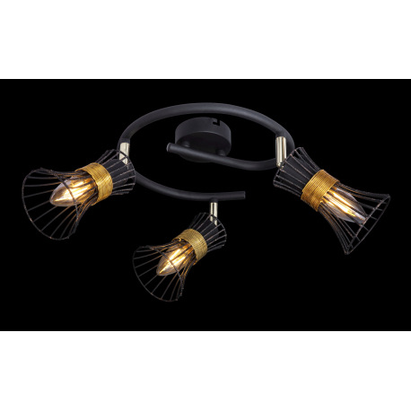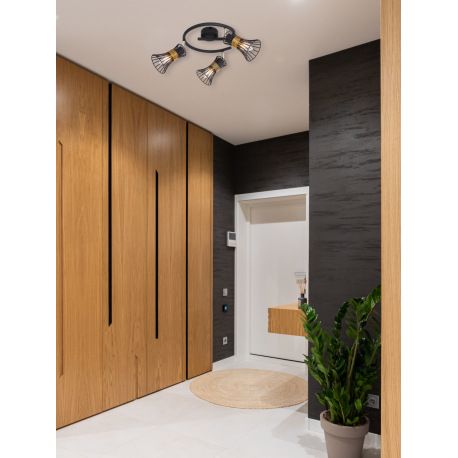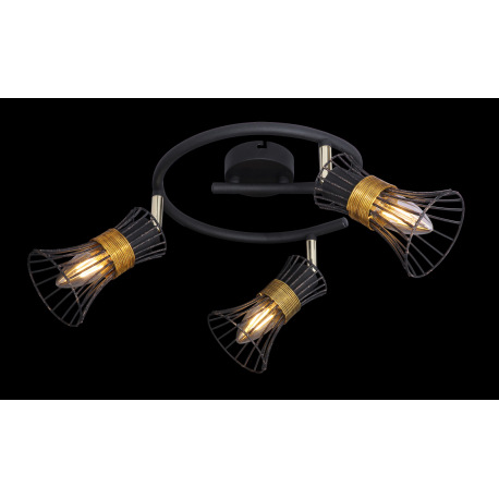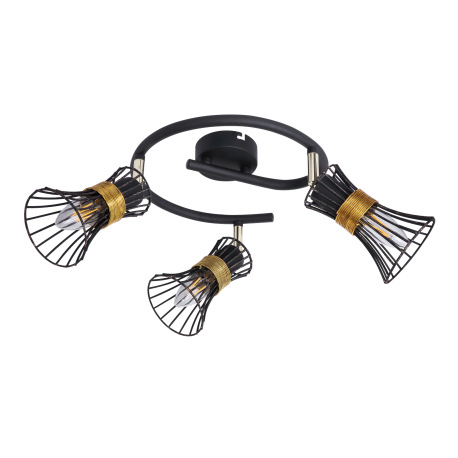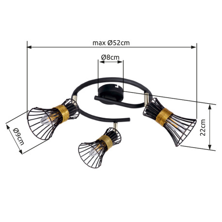 Stropné svietidlo, kov čierny a zlatý, kovové tyče čierne a zlaté, Ø250, V:220, bez žiaroviek 3xE14,