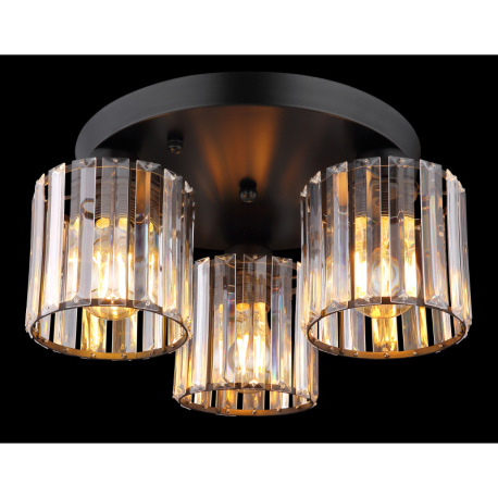 Stropné svietidlo, kov čierny, akrylové krištále číre, ø: 350mm, V: 180mm, bez žiaroviek 3xE27, max.