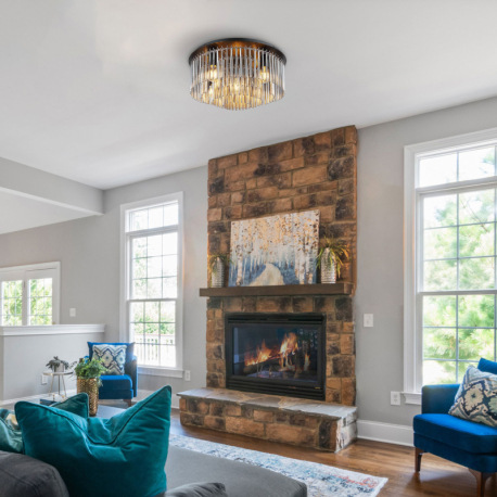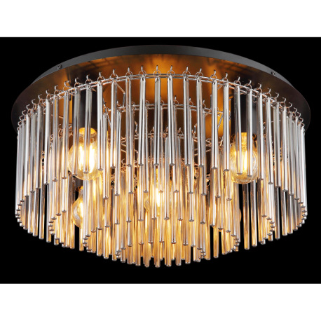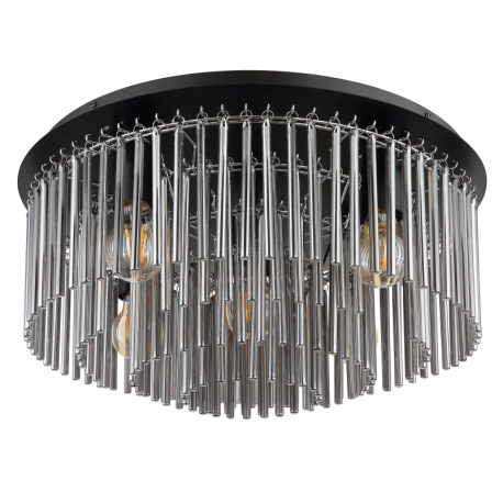 Stropné svietidlo, kov čierny, chróm, sklenené tyče dymovej farby, ø: 500 mm, V: 250 mm, bez žiarovi
