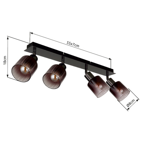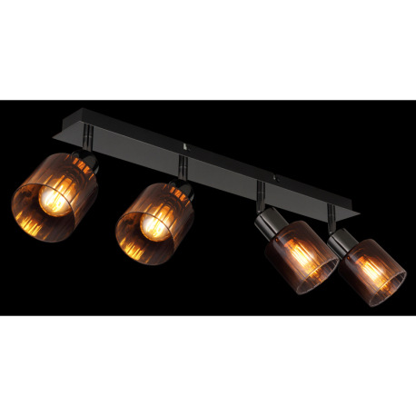 Stropné svietidlo, kov čierny chróm, sklo medenej farby a priehľadné, DxŠxV: 550x80x180mm, bez žiaro