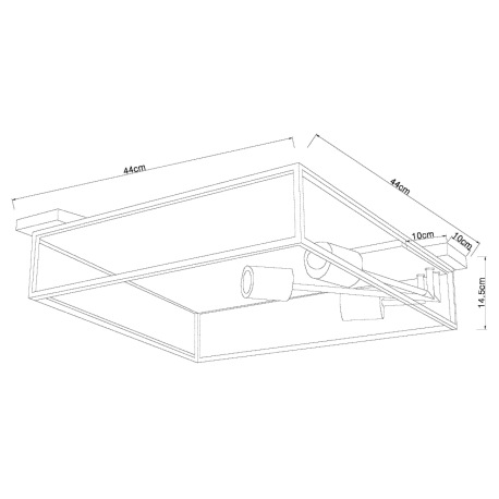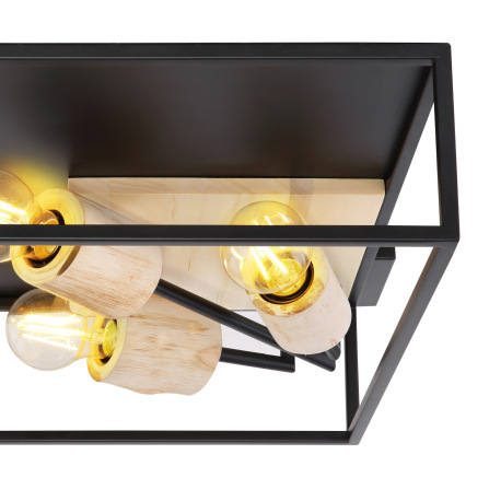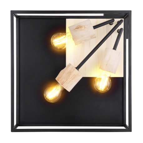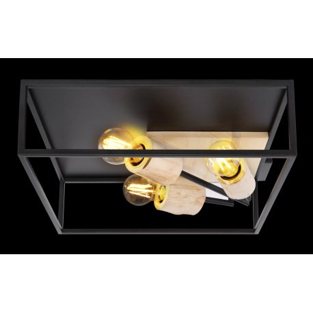 Stropné svietidlo, kov čierny, drevo, DxŠxV:440x440x145, bez žiaroviek 3xE27, max. 60W 230V