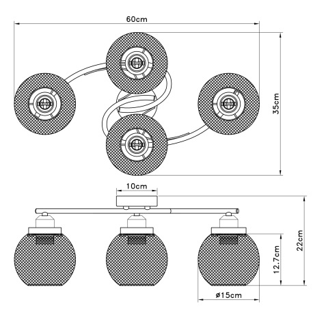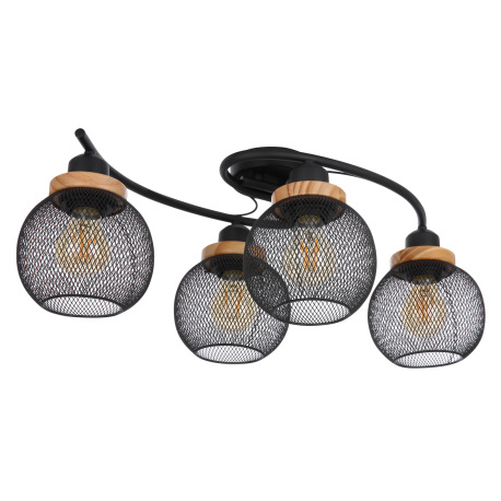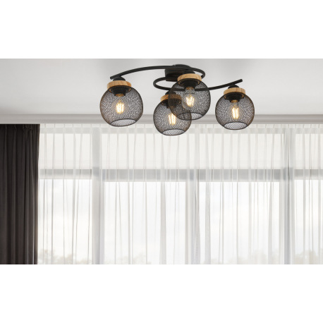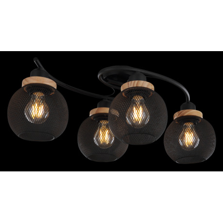 Stropné svietidlo, kov čierny, drevo, DxŠxV:600x350x220, bez žiaroviek 4xE27, max. 60W 230V